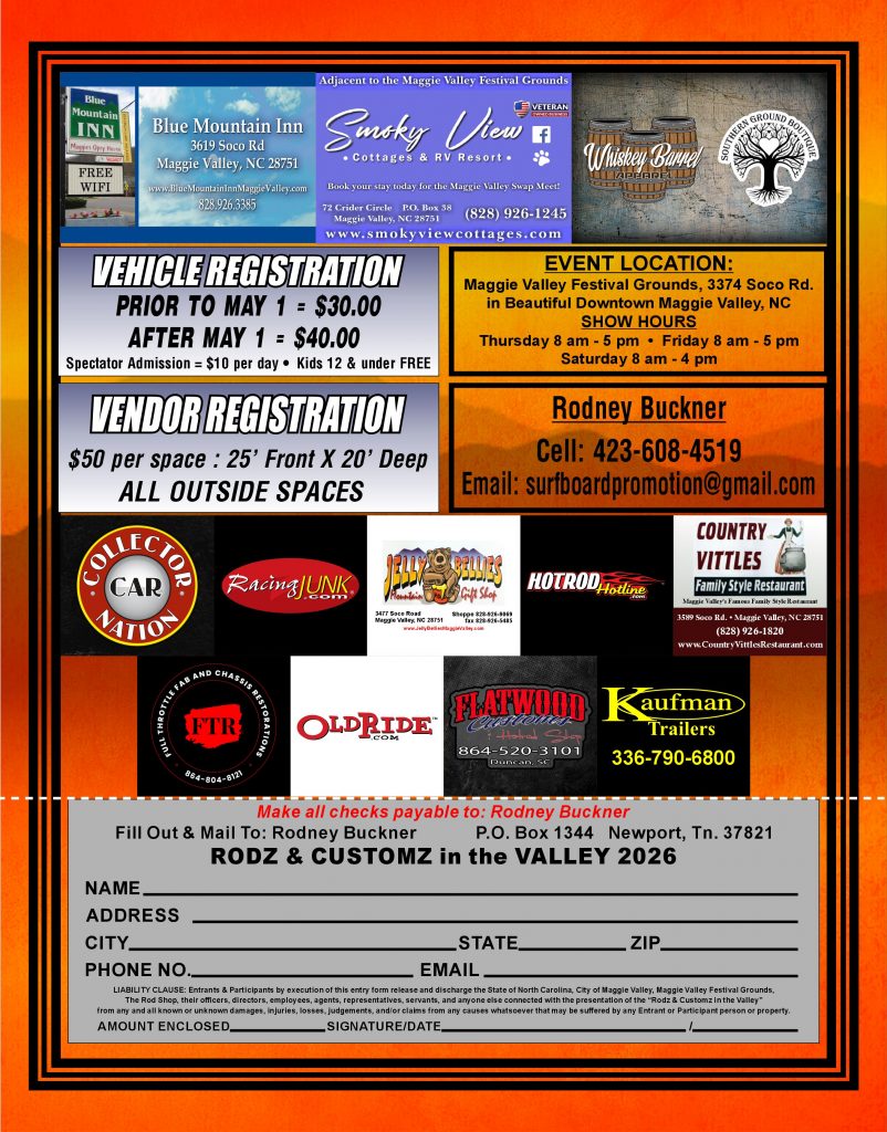 - Vendors Inside and car show vehicles must be inside on Thursday (8:00 am till 6:00 pm).